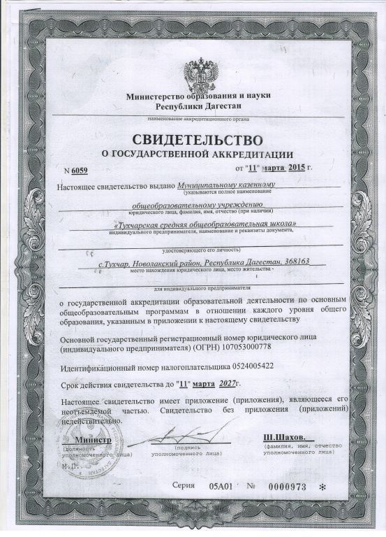 Муниципальное казенное образовательное учреждение "Тухчарская средняя общеобразовательная школа"